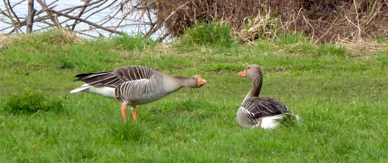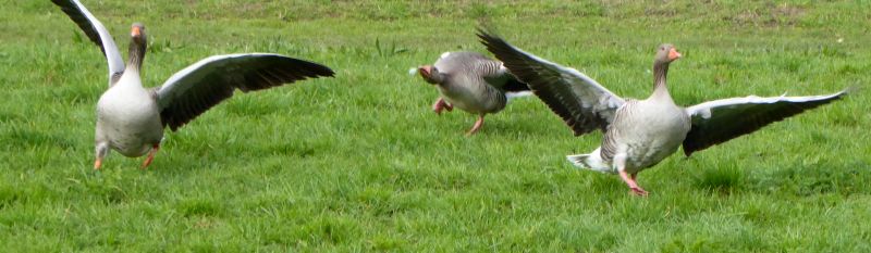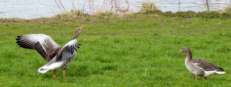 Zuerst machen wir noch einen mittelgroßen Spaziergang. Dabei beobachten wir das Balzverhalten und die Streitereien der Gänse.