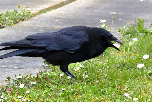 Die Krähe hat mehr Glück mit ihrer Beute.