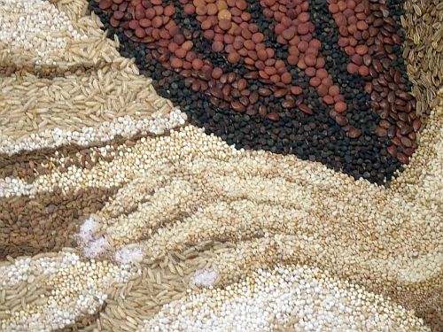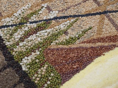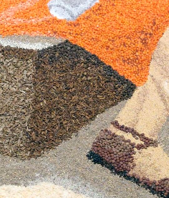 Seit 1988 entsteht in der Alten Kirche jährlich zum Erntedankfest aus Früchten, Samenkörnern und