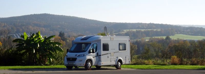 Deshalb bleiben wir nicht, sondern fahren raus aus der Rhön und landen bei herrlichem Sonnenschein auf unsrem Lieblingsplatz in Bad Soden-Salmünster.