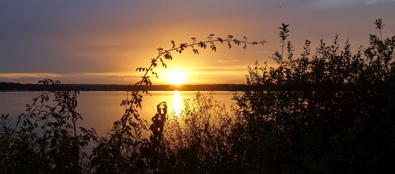 Kurz vorm Abendessen gehen wir aber nochmal zum See. Nun sind wir ganz alleine hier und genießen den Sonnenuntergang.