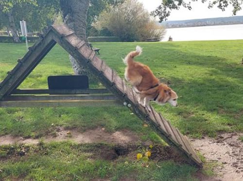 Und Carl hat seinen Spaß auf dem Hundespielplatz.