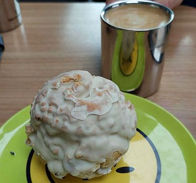 Zum Nachmittagskaffee gabs Schneeballen, das typische Wegzehrungsgebäck für weit angereiste Hochzeitsgäste, das vermutlich jeder Tourist mal probieren muss, und auch auf der Straße schon reinkaut, denn Carl lief durch Rothenburg nur mit der Nase am Boden und kratzte jeden Schneeballenkrümel aus den Pflasterfugen.