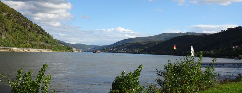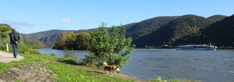 Nun gehen wir am Rhein entlang zurück und genießen den herrlichen Blick ins Mittelrheintal.