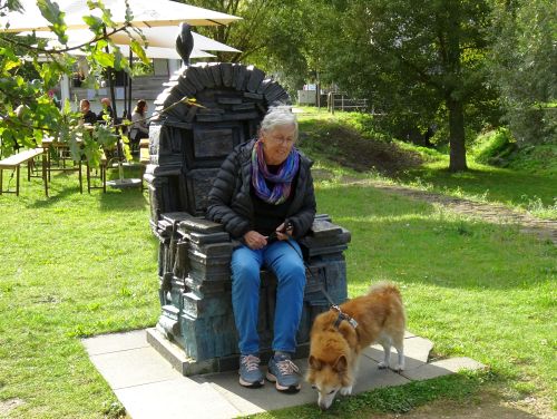 Und dann muss natürlich auch wieder ein Bild vom Rabenstuhl der Poesie gemacht werden. Aus 400 weggeworfenen Büchern aus Papiertonnen wurde das Kunstwerk hergestellt und davon dieser Bronzeabguss gefertigt. Es gibt insgesamt 4 dieser Stühle und sie sollen dran erinnern, dass jedes Buch bewahrt werden soll.