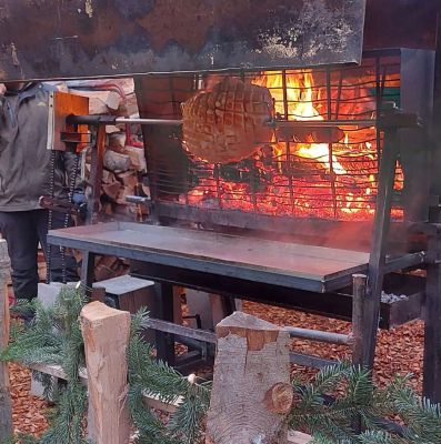 Richtung Schloss ist der Boden mit Rindenmulch aufgefüllt und es schließt sich hier der mittelalterliche Teil des Weihnachtsmarktes an.