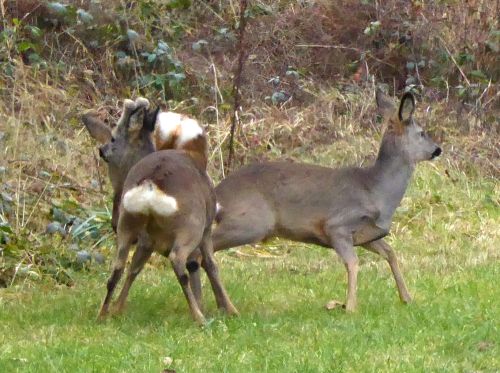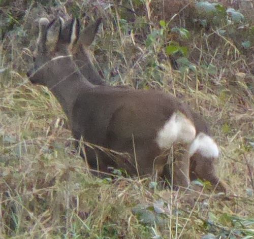 Die Böcke haben einen ovalen Spiegel. Und die Rehe stellen bei der Flucht die
