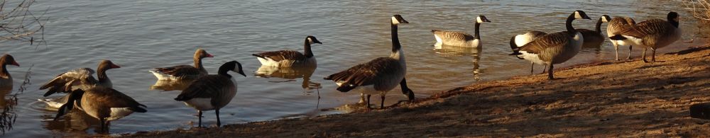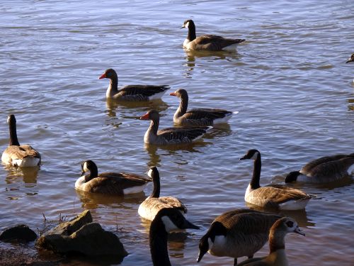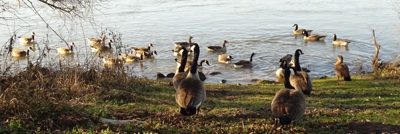 Alle Arten sind vertreten, die Junggänse und suchen sich ihre Partner, und die Alten schnattern schon drüben im Gebüsch.