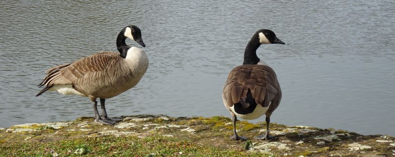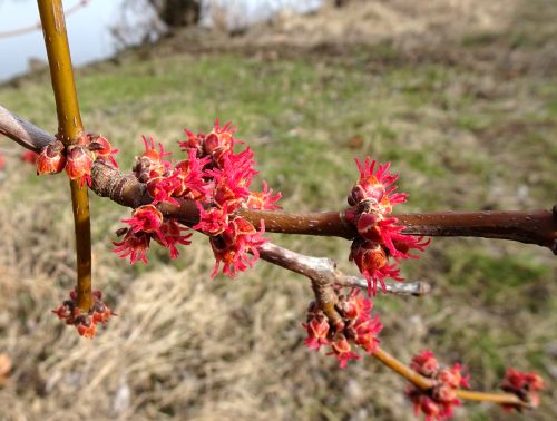 Der Rotahorn zeigt schon seine leuchtend roten Blüten, und die Gänse flirten