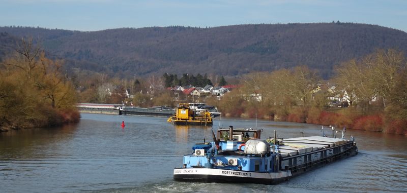 Auf dem Fluss ist grad auch der Teufel los. Erst ein Schubverband, der so lang