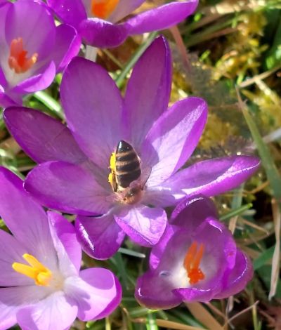Und im Kurpark finden wir ein paar Frühlingsboten, über die sich außer mir besonders die Bienchen freuen: