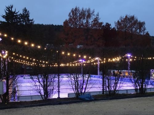 Jetzt ist der Stellplatz wieder frei und ist nicht mehr Materiallager für die nebenan gebaute Eisbahn. Und wir sind die ersten, die den Platz beziehen.