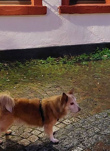 Zwischendurch unterhält er sich mit dem Podenco von nebenan, der genauso nett
