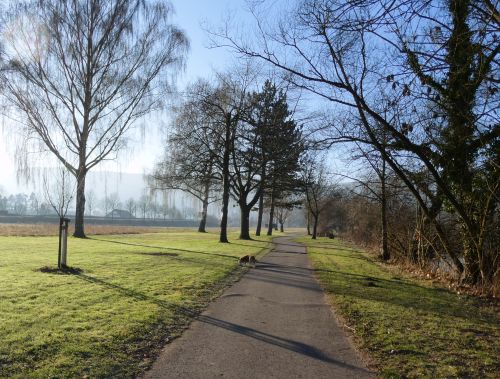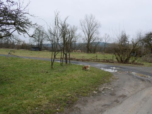 Spaziergang am Bach entlang. Und gerade kommt einer vom Frühstück auf der Wiese
