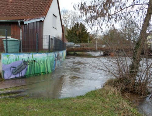 Gestern waren wir kurz in Gelnhausen. Die Müllerwiese steht unter Wasser, die