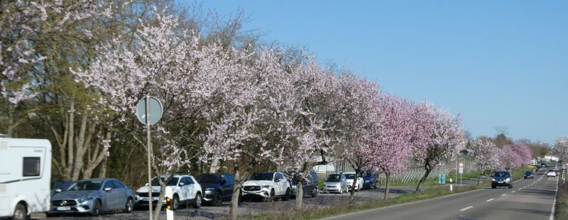 Die Mandelmeile hier ist gemütlich, keine Buden und kein Spektakel, während sich in Gimmeldingen und Edenkoben die Mandelblüte zur Völkerwanderung mit Weinfest entwickelt hat.