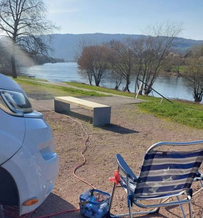 Von den 10 Womos, die dort stehen, kennen wir die Hälfte aus Horbach, Bad