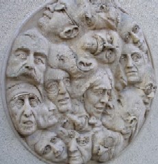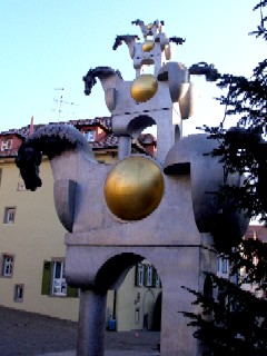 Zuhause muss ich noch nachlesen, was es mit den Skulpturen auf sich hat, aber irgendwie scheinen sie in Zusammenhang mit der Villa Visconti, dem Haus der Köpfe, zu stehen.