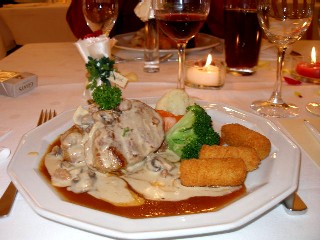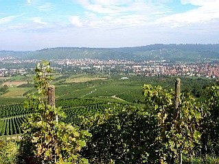 Unser diesjähriger Herbsturlaub beginnt mit der Hochzeit von Peters Nichte in der Nähe von Stuttgart, der Rest der Tour wird sich ergeben. Lediglich Jandelsbrunn in der hintersten Ecke des Bayernwaldes (Knaus Werksbesichtigung) und das Treffen von Peters Sangesbrüdern im Spessart steht fest. Nach 5 Stunden und 20 km Stau sind wir endlich in Beutelsbach angekommen und finden auch am Ortsende das Hinweisschild zum Landgut Burg. Es ist bereits butzedunkel und die Fahrt durch die Weinberge ist recht abenteuerlich, denn vor jeder Serpentine leuchten die Scheinwerfer erst mal in den dunklen Nachthimmel. Endlich oben angekommen erwischen wir gerade noch das Brautpaar, das auf dem Weg ins Bett war. Kurze Begrüßung und Verabschiedung und dann gehen wir erst mal unseren Hunger stillen - geschmelzte Maultaschen und schwäbischer Wurstsalat. Den Preis verschweige ich lieber, denn im Urlaub rechnen wir ja nicht nach. Anschließend gibts noch ein Absackerchen mit Peters Papa, der ebenfalls hier oben einquartiert ist, und dann fallen wir total müde in die Heia.