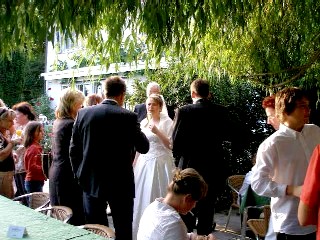 Als wir so schön mitten im Feiern waren, kam urplötzlich ein gewaltiges Unwetter vorbei und uns fiel unser offenes Heki ein. Peter musste laufen, aber die Anzugsjacke war zu teuer, die blieb hier. Naja, ein Ersatzhemd hatte er ja gottseidank dabei, und nachdem er sich und unsre Sitzpolster trockengelegt hatte, konnte die Feier weitergehen.