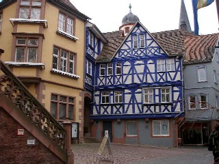 Wie meistens sind wir wieder mal die letzten, die den Stellplatz verlassen, und gegen 11:30 tuckern wir über die Landstraße Richtung Würzburg. Und auch heute nerven uns Umleitungen ohne Ende - die spinnen, die Bayern - und wir haben die Schnauze voll und suchen die nächste Autobahnauffahrt, um nach Wertheim zu kommen. Der Platz ist recht voll, denn es ist Michaelismarkt, den wir uns nicht entgehen lassen können. Aber zuerst müssen wir in den Woll-Laden. Der hat aber leider bis Ende Oktober geschlossen. Also schlendern wir noch ein wenig durch die Stadt. Wir kennen Wertheim zwar von früheren Besuchen, doch heute entdecken wir endlich das berühmte blaue Fachwerkhaus.