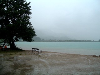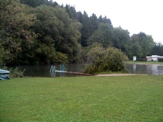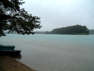 Nach der Begrüßung machen wir einen Erkundungsspaziergang und stellen fest, dass dies ein traumhafter Platz am See ist - wenn nur dieser beschissene Regen endlich nachlassen würde.