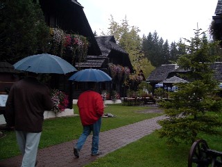 Hier hat ein Villacher Architekt alte Bauernhäuser zusammengetragen und aufwändig wieder aufgebaut. Anstatt ein Museumsdorf draus zu machen, wie es sonst üblich ist, wurden hier aus den herrlichen alten Holzhäusern Ferienhäuser gemacht.