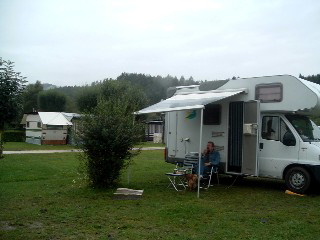 Stellplatz am Hotel zur Post für 8 €. Die Nachbarn stimmen sich schon mal aufs