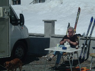 halb eins kommt doch tatsächlich ein Irrer mit dem Womo hier herauf, allerdings