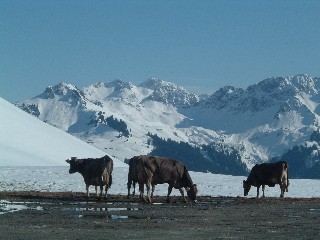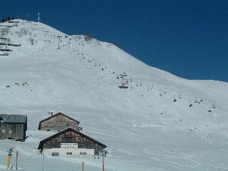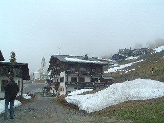 Heute ists leicht bewölk und wir beschließen, uns Damüls anzusehen. Auch hier gibts nur ein paar Pensionen und Hotels, aber immerhin ein Kiosk.