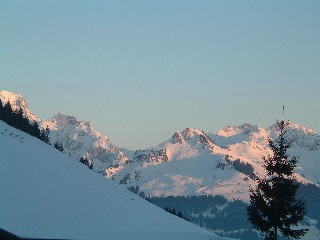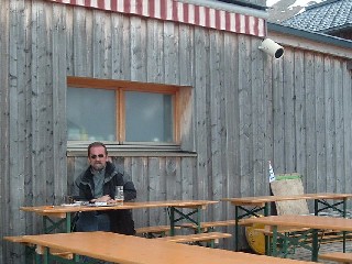 auf 1486 m Höhe direkt am Liftparkplatz, und vor uns werden die Berge gerade von den letzten Sonnenstrahlen beleuchtet. Strom gibts auch bei Thomas Schäfer, und nachdem die Schüssel ausgerichtet ist, wirds Zeit zum Essen. Wir gönnen uns nach dieser strapaziösen Fahrt das Gasthaus Rössle. Durchs Fenster kann man runter ins Tal gucken und auf Augenhöhe befinden sich die Bergspitzen der anderen Seite des großen Walsertales. Wahnsinnsausblick. Urlaub.