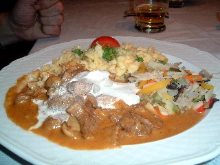 Züricher Geschnetzeltes mit Knöpfle Selchfleischknödel