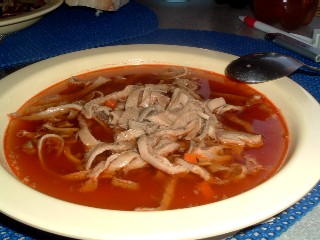 Der Campingplatz hat sich inzwischen gut gefüllt, denn eine geführte Tour mit holländischen Gespannen (ca. 25) ist gerade eingetroffen. Zum Abendessen gibts Flaczki, fertig zubereitete aus dem Supermarkt (Kutteln in Suppe).