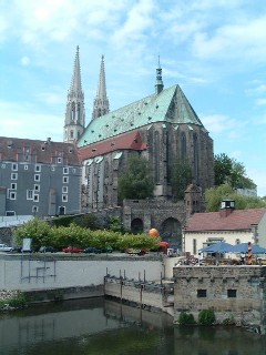 Blick von hinten auf die Peterskirche und erster Blick über die Neiße hinüber nach Polen.