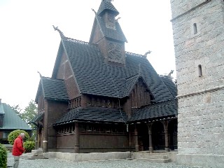 einer echten Stabskirche, die in Einzelteilen hierher gebracht wurde und ohne einen einzigen Nagel aufgebaut worden sein soll. Ich hab allerdings Schrauben und Nägel am Schindeldach entdeckt.