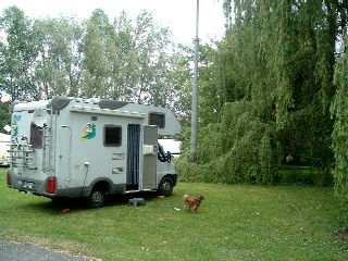 Jetzt wissen wir wo es lang geht, landen trotzdem zum 3. Mal auf der gleichen Autobahn, und dann klappts endlich. Sehr gepflegter Campingplatz Nr. 215, allerdings nur durch einen Bretterzaun vom Autobahnkreuz getrennt. Zur Abwechslung werden die Segelflieger direkt überm Platz hochgezogen und das Brummen vermischt sich mit der Geräuschkulisse der A4, A86 und den Polizeisirenen. Naja, ist ja nur für eine Nacht.