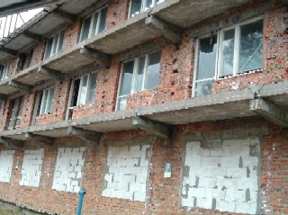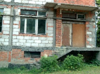 aber die Zufahrt führt durch Ruinen, halbfertige und wieder zerstörte Rohbauten,