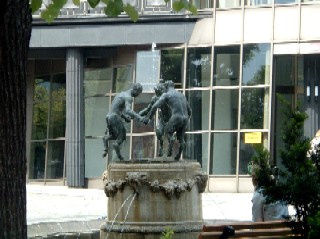 während das Rathaus (ich denke, es ist das Rathaus) eher klotzig nüchtern italienisch wirkt. Kleine Geschäfte, gepflegte Straßen, moderne Kaufhäuser - eine freundliche Stadt.