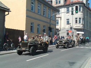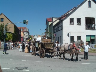 pünktlich zum Festzug anlässlich des Brunnenfestes dort ein. Also Auto am