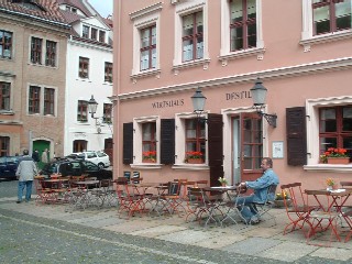 Aber leider gibts auch jede Menge leer stehende Häuser neben wunderschönen alten Villen in den Außenbezirken, und da wird uns doch wieder das Randgebiet bewusst. Egal. Brotsuppe, Linseneintopf, Gartenwirtschaft in der Sonne, und die runden Füße durchs Kopfsteinpflaster sind vergessen.