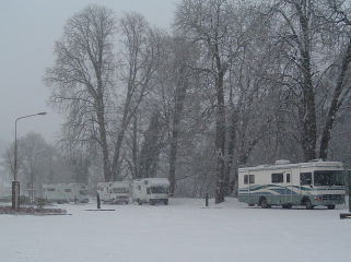 Die ganze Nacht fielen Schneeklumpen von den Bäumen auf unser Dach und es war recht unruhig. Peter ziehts nach Hause, weil er heute Singstunde hat. Insgeheim hatte ich ja gehofft, dass der Straßenzustand weiterhin kritisch bleibt und wir noch einen weiteren Tag hier verbringen können. Aber die Straßen waren frei und so verabschieden wir uns um die Mittagszeit. Bis zum 9.1. haben wir ja noch Zeit und mal sehen, wo wir noch landen.