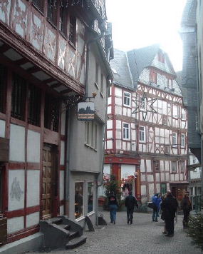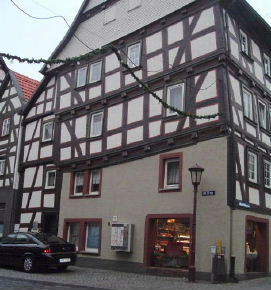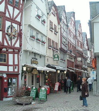 Schöne Fachwerkhäuser mit vielen kleinen Geschäften