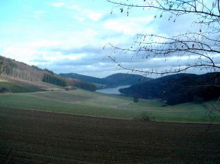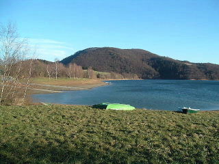 Also gucken wir uns das Springen heute Abend im Fernseher an und fahren weiter zum Diemelsee. Die Sonne kommt raus und es ist eine schöne Fahrt über enge Straßen, 13 % rauf, 13 % runter, Kurven ohne Ende und da isser: