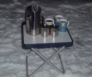 Nach dem obligatorischen Spaziergang zum See und zum Kloster war Aufwärmen angesagt. Was eignet sich dazu besser als Glühwein und heißer Amaretto mit Sahnehäubchen? So langsam leerte sich der Parkplatz, und weils heute Big Brother gab, lieh uns Paul eine Batterie und den Wechselrichter und der Abend war gerettet.
