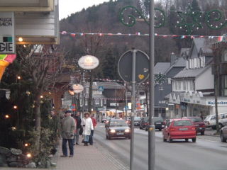 Gegen 11 Uhr Aufbruch Richtung Willingen, wo heute das Skispringen anfängt. Diesmal lassen wir Korbach links liegen und weiter gehts durch immer buckeliger werdende Landschaft. Schnee gibts nur als Reste, aber heutzutage braucht man fürs Skispringen keinen echten mehr. Vor Willingen werden wir umgeleitet, schaffens aber trotzdem hintenrum in die Stadt reinzukommen. Leider nützt uns das gar nix, denn der Weg zur Schanze ist absolut gesperrt.