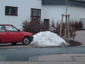 Für heute Nachmittag ist Schnee angesagt, daher sind wir schon gegen 10:00 abreisefertig, um noch bei normalen Straßenverhältnissen in Weilburg anzukommen. Paul und Lucia fahren schon mal los und bis ich die Reste weggepackt habe, fängts schlagartig an zu schneien und alles ist weiß. Soviel zur Wettervorhersage. Trotz Schneetreiben liefs auf der Autobahn allerdings recht gut und auch die 11% Gefälle nach Weilburg runter haben wir gut geschafft. Aber dann gings richtig los. Binnen kürzester Zeit lagen 15 cm Schnee und draußen auf der Straße rutschten einige Autos in der Kurve auf den Bürgersteig.