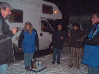 Inzwischen hat der Schneefall etwas nachgelassen und als hartgesottene und erprobte Freisteher trampeln wir den Schnee platt. Gegen 23:00 wirds langsam kalt und wir verziehen uns ins warme Wohnmobil.
