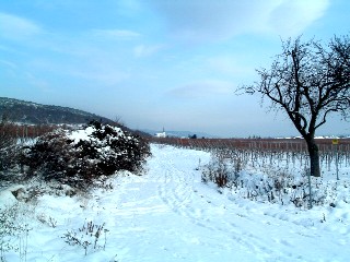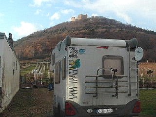 Wunderbare Wanderwege führen durch die Weinberge und gegen Abend haben wir einen herrlichen Blick auf das beleuchtete Schloss. Zum Abendessen gibts Köchelpfanne - die Reste vom Weihnachtsfondue zusammengeköchelt - und anschließend lassen wir den Tag vor der Glotze mit einer Friede-Freude-Eierkuchenschnulze ausklingen. Noch ein Hundegassi bei klirrender Kälte und sternenklarem Himmel, und dann ab in die Falle.