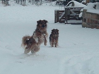 Die Hunde sind außer Rand und Band und es ist herrlich, ihnen beim Toben zuzusehen. Bruno fängt die Schneebälle, während Lili dabei eher etwas zurückhaltend ist, aber wie blöd durch den Schnee rast.