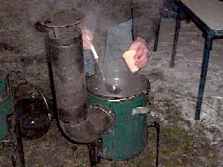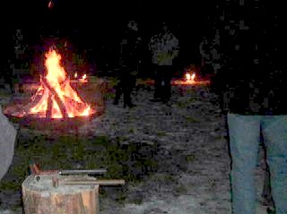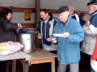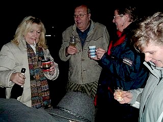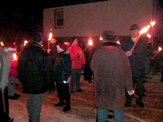 Es ist schon beeindruckend, wie sich die Prozession durchs Dorf und den Berg hoch schlängelt. Unterwegs machen einige schlapp und Kerstin sammelt die Fußkranken mit dem PKW auf. Der Lagerplatz ist schon vorbereitet, das letzte Stück Weg mit Fackeln beleuchtet und in den Kesseln dampft schon der Glühwein. Es herrscht eine prima Stimmung und dies ist die beste Voraussetzung für den anschließenden Absacker in der Tenne.